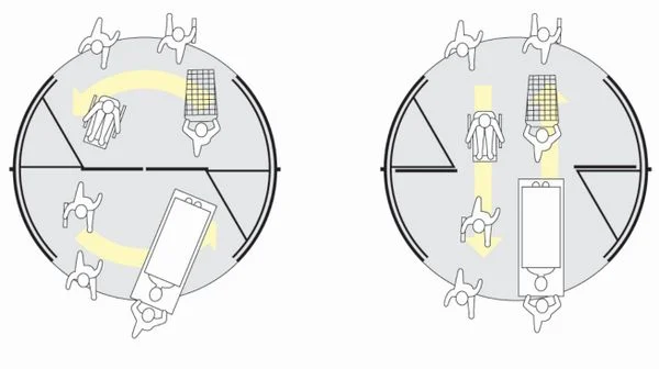 - Phân luồng mượt mà: Cửa xoay tròn quanh trục giữa, tạo thành các buồng di chuyển riêng biệt cho mỗi người. Điều này không chỉ giúp giảm thiểu va chạm mà còn cải thiện đáng kể lưu thông trong giờ cao điểm, tạo trải nghiệm thông suốt cho người dùng.